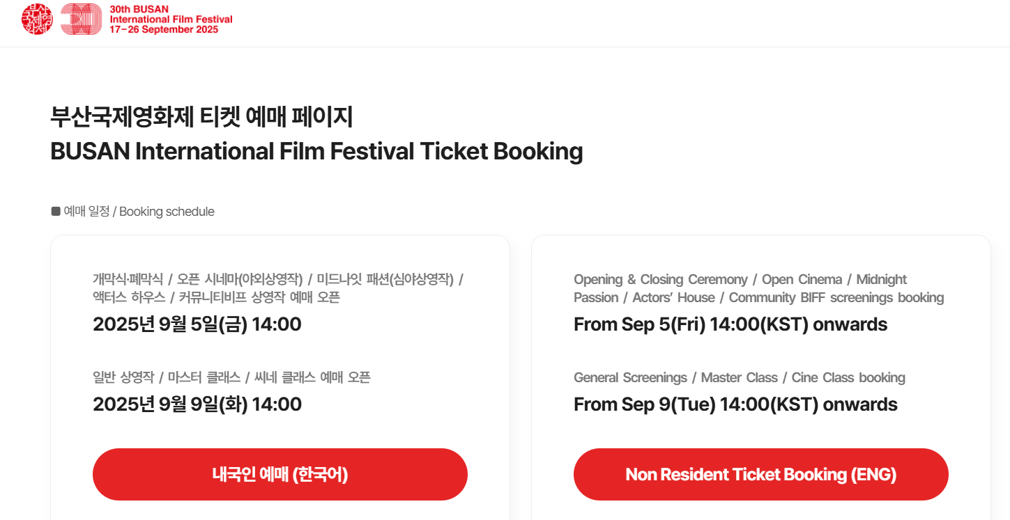 - 스마트폰 캘린더 앱에 예매 시작 알림 등록 (예: “BIFF 예매 시작 9/5 14:00”)