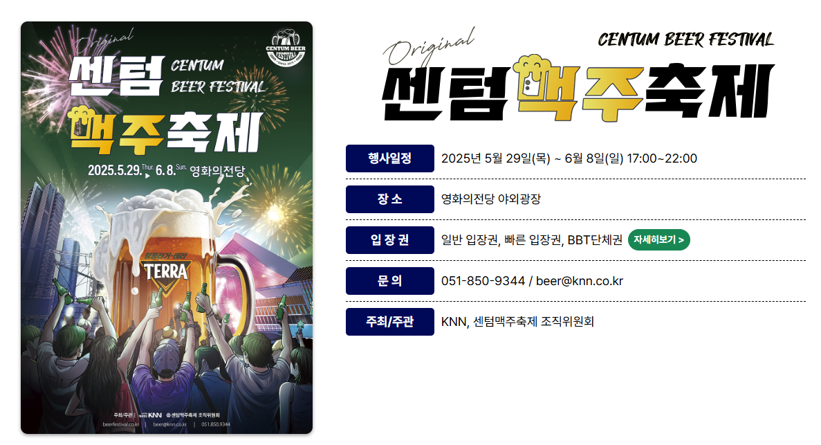 부산의 초여름을 상징하는 대표 문화행사인 센텀맥주축제가 2025년에도 성황리에 개최됩니다. ‘일상에서 벗어나 즐거운 일탈’을 테마로 삼은 이 축제는 단순한 맥주 시음 행사를 넘어, 문화, 공연, 먹거리, 체험까지 아우르는 종합 라이프스타일 페스티벌로 거듭나고 있습니다. 이번 글에서는 축제를 찾는 분들이 꼭 알아야 할 장소 정보, 운영 시간, 입장료, 주요 맥주 브랜드, 공연 및 즐길거리까지 A부터 Z까지 한 번에 정리해드립니다. 지금 부산 센텀에서 펼쳐지는 생생한 여름의 무대를 놓치지 마세요!